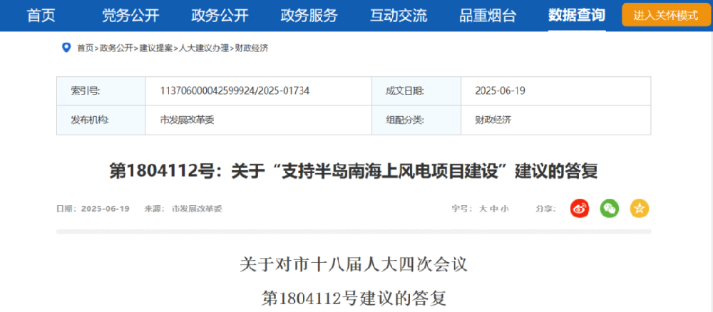 近日,煙臺市發(fā)改委公布關(guān)于對市十八屆人大四次會議第1804112號:關(guān)于“支持半島南海上風(fēng)電項目建設(shè)”建議的答復(fù)。