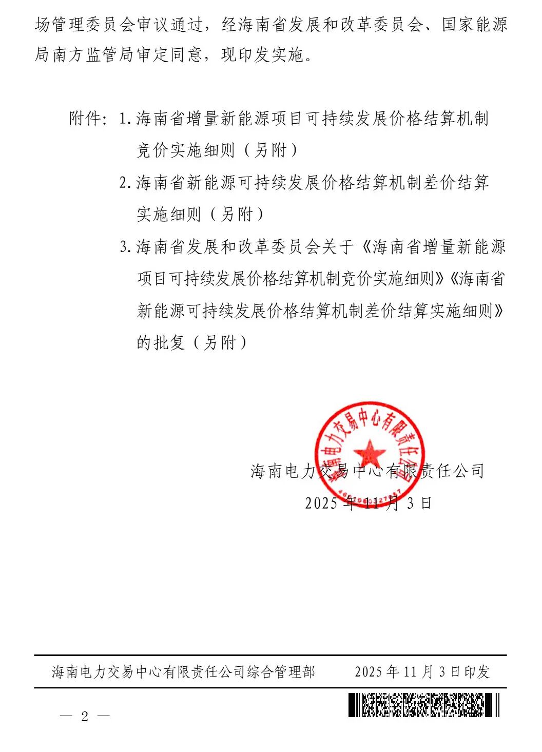 11月3日,海南電力交易中心印發(fā)海南省新能源上網(wǎng)電價市場化改革配套細(xì)則的通知,實施細(xì)則提到,適用于2025年6月1日及以后投產(chǎn)的且未納入機制執(zhí)行范圍的新能源項目(風(fēng)電、太陽能發(fā)電項目,下同)。