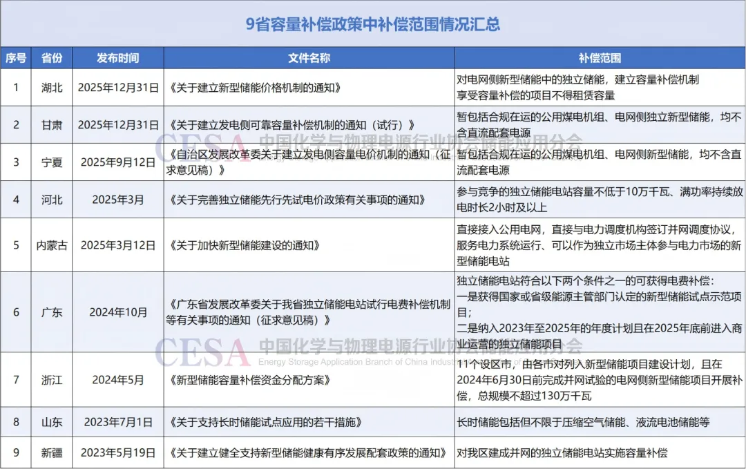 截至2025年12月底,全國各省區(qū)已全部完成省級“136號文”實施方案發(fā)布,增量項目競價工作基本落地;湖北、江蘇、新疆、云南等14省陸續(xù)發(fā)布工商業(yè)分時電價退坡相關(guān)文件,結(jié)合各省電力市場的實際運行情況,從不同角度、分不同程度制定省級細則;13省發(fā)布綠電直連省級承接文件,關(guān)于綠電直連創(chuàng)新項目的地方探索也在各省不斷上演;湖北、甘肅、寧夏等9省出臺容量補償相關(guān)機制。