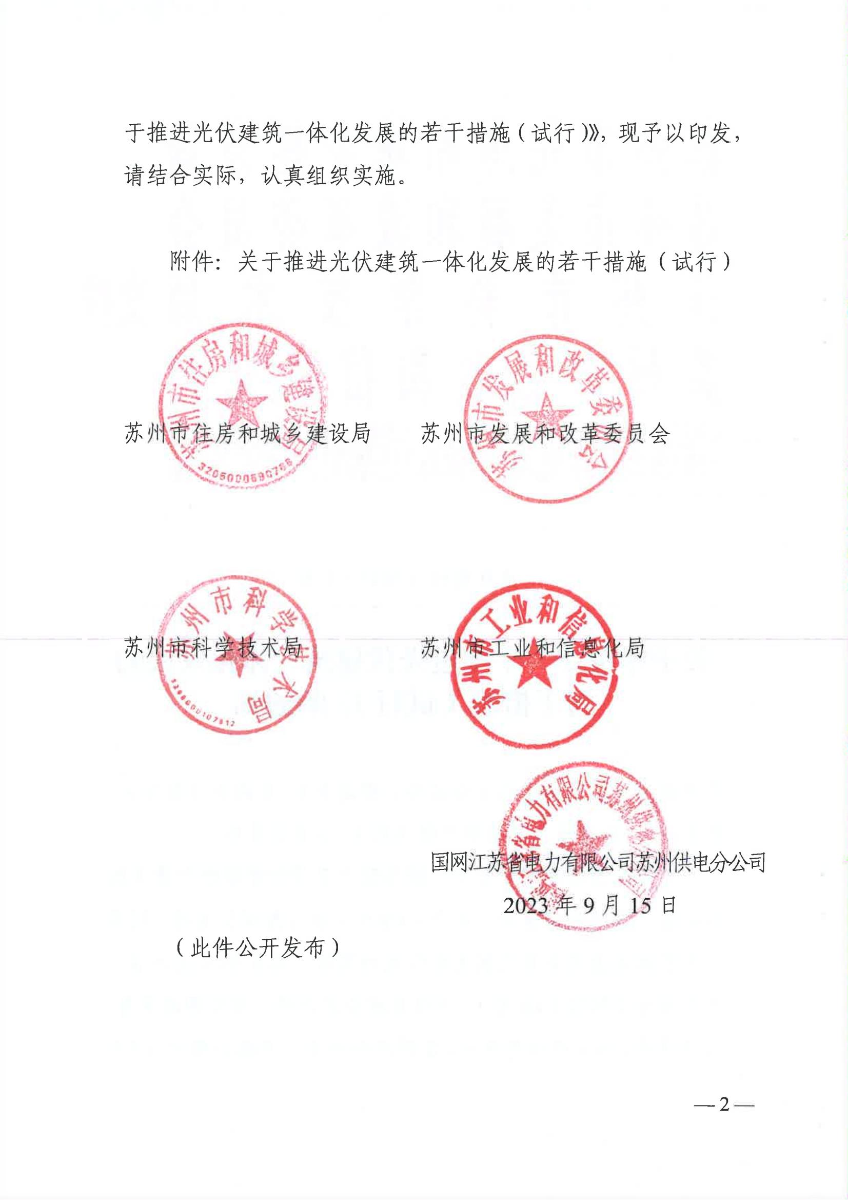 3月4日,蘇州市發(fā)展和改革委員會發(fā)布關(guān)于印發(fā)《關(guān)于推進(jìn)光伏建筑一體化發(fā)展的若干措施(試行)》的通知。該《措施》(試行)由蘇州市住房和城鄉(xiāng)建設(shè)局、蘇州市發(fā)展和改革委員會、蘇州市科學(xué)技術(shù)局、蘇州市工業(yè)和信息化局、國網(wǎng)江蘇省電力有限公司蘇州供電分公司等五部門聯(lián)合下發(fā)。文件指出,到2025年底,蘇州形成系統(tǒng)的光伏建筑一體化扶持政策和技術(shù)體系,打造一批光伏建筑一體化(BIPV)示范項(xiàng)目。實(shí)現(xiàn)光伏建筑一體化向標(biāo)準(zhǔn)化、規(guī)模化、系列化方向發(fā)展。