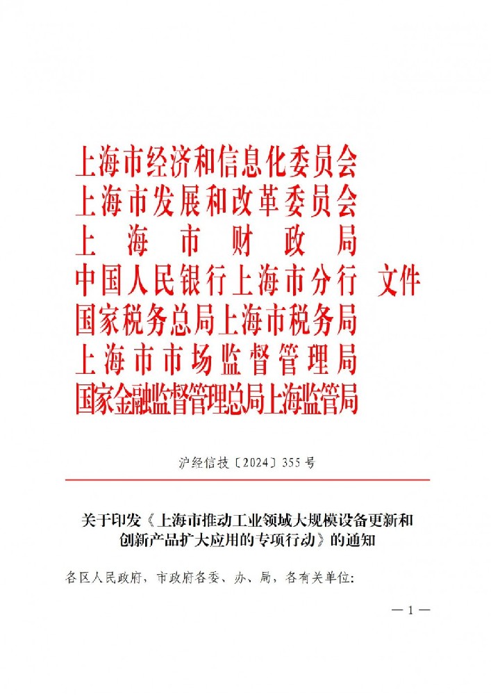 5月31日,上海市經(jīng)濟和信息化委員會等七部門印發(fā)《上海市推動工業(yè)領(lǐng)域大規(guī)模設備更新和創(chuàng)新產(chǎn)品擴大應用的專項行動》。