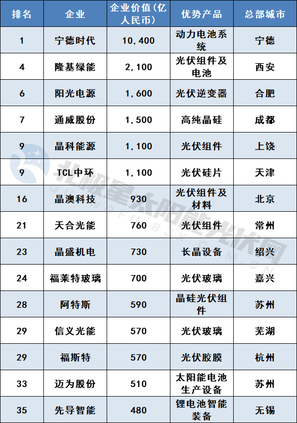 據(jù)榜單顯示,寧德時(shí)代、比亞迪、理想汽車位居前三,榜單前十的企業(yè)中有五家光伏企業(yè),分別是隆基綠能、陽光電源、通威股份、晶科能源、TCL中環(huán)。