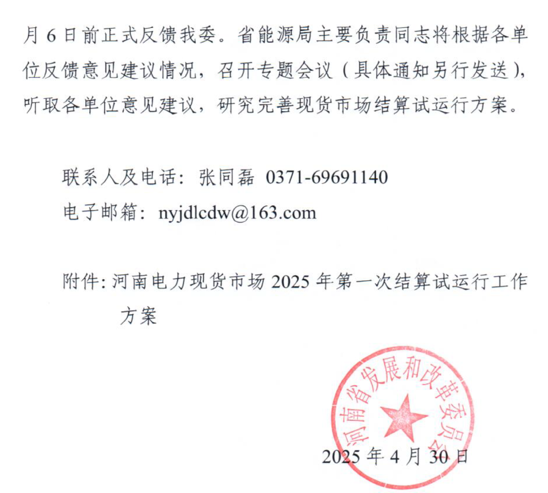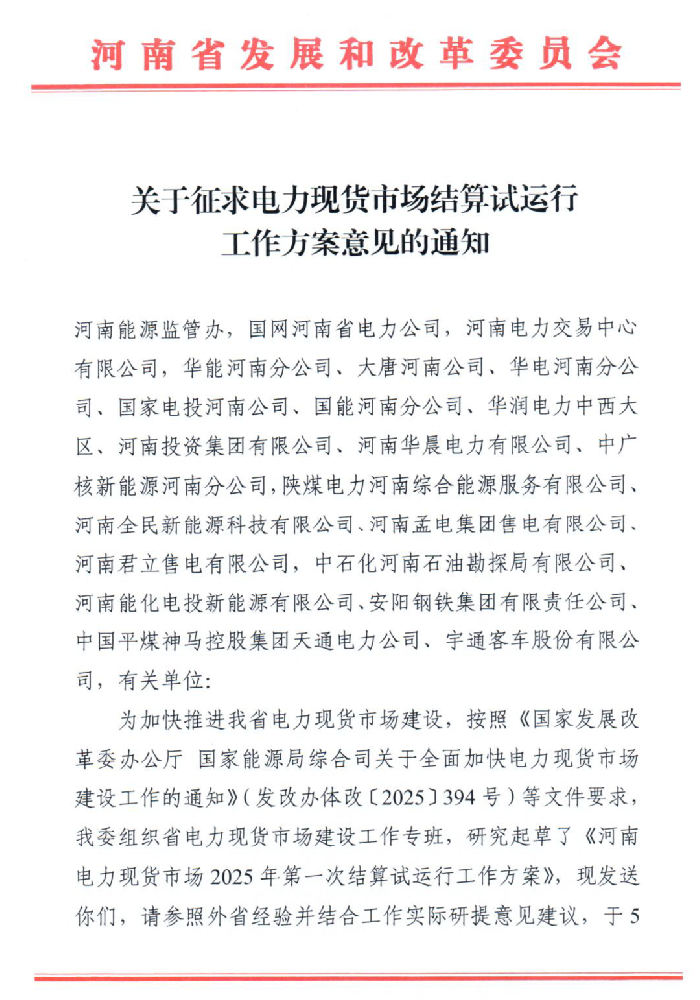 4月30日,河南省發(fā)改委發(fā)表了《關(guān)于征求電力現(xiàn)貨市場結(jié)算試運(yùn)行工作方案意見的通知》,針對《河南電力現(xiàn)貨市場2025年第一次結(jié)算試運(yùn)行工作方案》征求意見(以下簡稱《工作方案》)。河南將于5月份適時開展現(xiàn)貨市場結(jié)算試運(yùn)行。