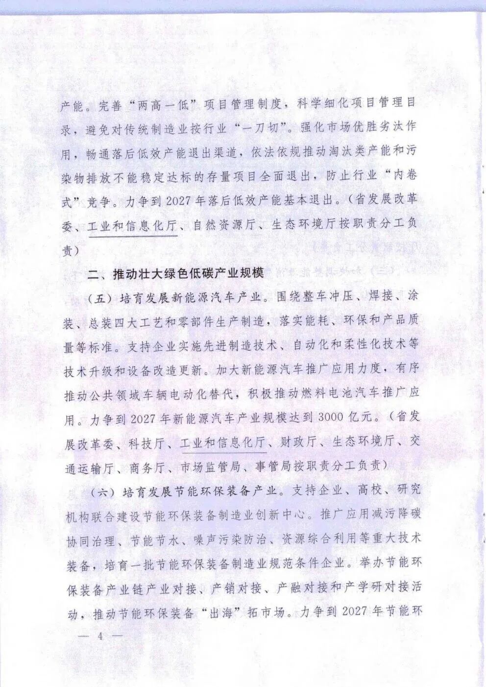 培育發(fā)展新能源汽車產(chǎn)業(yè)。圍繞整車沖壓、焊接、涂裝、總裝四大工藝和零部件生產(chǎn)制造,落實(shí)能耗、環(huán)保和產(chǎn)品質(zhì)量等標(biāo)準(zhǔn)。支持企業(yè)實(shí)施先進(jìn)制造技術(shù)、自動(dòng)化和柔性化技術(shù)等技術(shù)升級(jí)和設(shè)備改造更新。加大新能源汽車推廣應(yīng)用力度,有序推動(dòng)公共領(lǐng)域車輛電動(dòng)化替代,積極推動(dòng)燃料電池汽車推廣應(yīng)用。力爭到2027年新能源汽車產(chǎn)業(yè)規(guī)模達(dá)到3000億元。