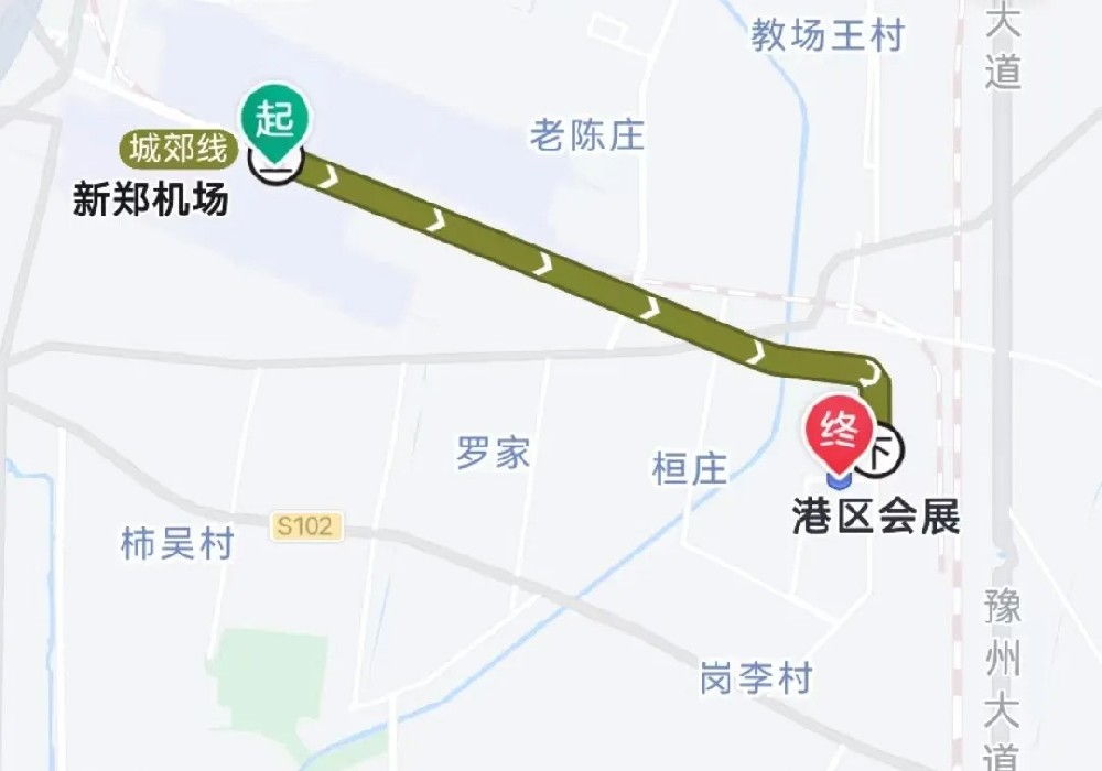 新鄭機場站上車→機場東站→港區(qū)會展站下車,共2站,票價3元,約19分鐘。